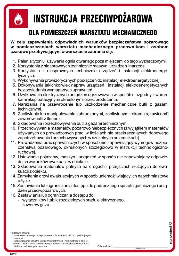 Instrukcja PPOŻ. DB012 Instrukcja przeciwpożarowa dla pomieszczeń warsztatu mechanicznego