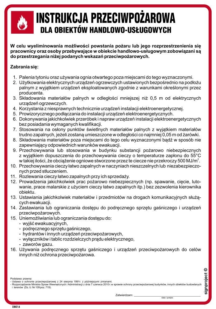 Instrukcja PPOŻ DB014 to specjalistyczny dokument przeznaczony dla obiektów handlowo-usługowych, który stanowi niezbędne narzędzie w zakresie bezpieczeństwa przeciwpożarowego. Zawiera szczegółowe wytyczne i procedury postępowania w sytuacjach zagrożenia pożarowego, dostosowane do specyfiki obiektów o charakterze handlowym i usługowym. Instrukcja umożliwia skuteczne zapobieganie pożarom, a także zapewnia prawidłową organizację działań ratowniczych oraz ewakuacyjnych. Dokument ten jest zgodny z obowiązującymi przepisami prawa oraz normami bezpieczeństwa, co czyni go nieodzownym elementem wyposażenia każdego obiektu, w którym przebywają pracownicy i klienci. Instrukcja PPOŻ DB014 to gwarancja profesjonalnego podejścia do ochrony przeciwpożarowej oraz podniesienia poziomu bezpieczeństwa w miejscu pracy i obsługi klientów.