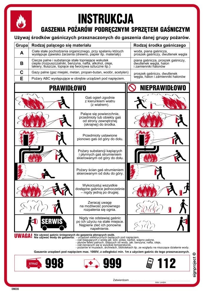 Instrukcja PPOŻ DB035 to profesjonalny dokument przeznaczony do skutecznego i bezpiecznego gaszenia pożarów przy użyciu podręcznego sprzętu gaśniczego. Zawiera szczegółowe wytyczne oraz praktyczne informacje, które umożliwiają użytkownikom szybkie i prawidłowe reagowanie w sytuacjach zagrożenia pożarowego. Instrukcja została opracowana z uwzględnieniem obowiązujących przepisów i norm bezpieczeństwa pożarowego, co czyni ją niezbędnym elementem wyposażenia każdej firmy, instytucji czy obiektu użyteczności publicznej. Dzięki klarownej i przystępnej formie przekazu, ułatwia zrozumienie zasad korzystania z gaśnic, hydrantów oraz innych dostępnych środków gaśniczych. Instrukcja PPOŻ DB035 jest niezastąpionym narzędziem w profilaktyce pożarowej oraz podnoszeniu świadomości i bezpieczeństwa pracowników.